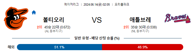 [킹콩티비] 06월 14일 볼티모어 vs 애틀랜타 MLB 생중계, 스포츠분석,스포츠중계