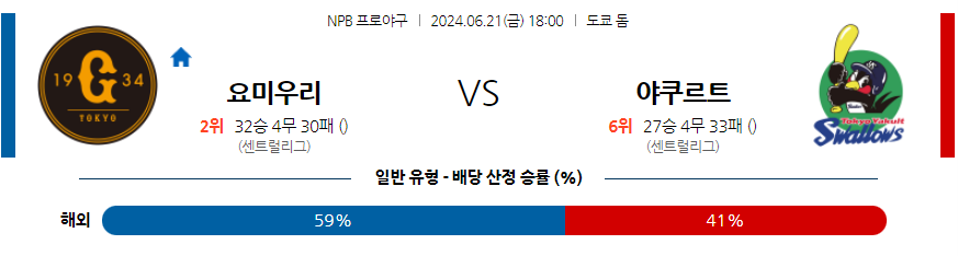 [킹콩티비] 06월 21일 요미우리 vs 야쿠르트 NPB 생중계, 스포츠분석,스포츠중계