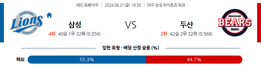 [킹콩티비] 06월 21일 삼성 vs 두산 KBO 생중계, 스포츠분석,스포츠중계