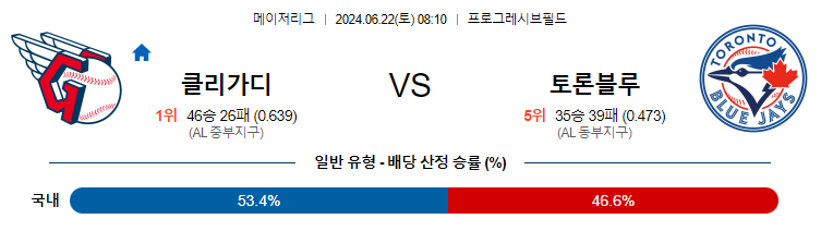 [킹콩티비] 06월 22일 클리블랜드 vs 토론토 MLB 생중계, 스포츠분석,스포츠중계