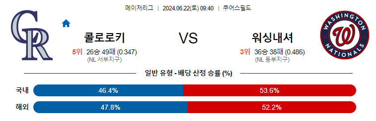 [킹콩티비] 06월 22일 콜로라도 vs 워싱턴 MLB 생중계, 스포츠분석,스포츠중계