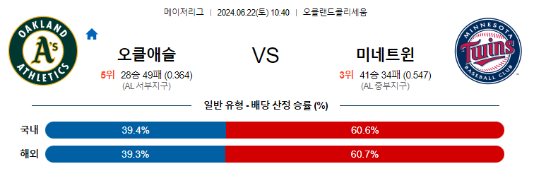 오클랜드 미네소타 야구분석