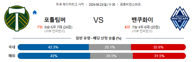 [킹콩티비] 06월 23일 포틀랜드 vs 밴쿠버 MLS 생중계, 스포츠분석,스포츠중계