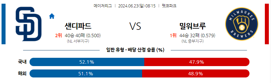 [킹콩티비] 06월 23일 샌디에이고 vs 밀워키 MLB 생중계, 스포츠분석,스포츠중계