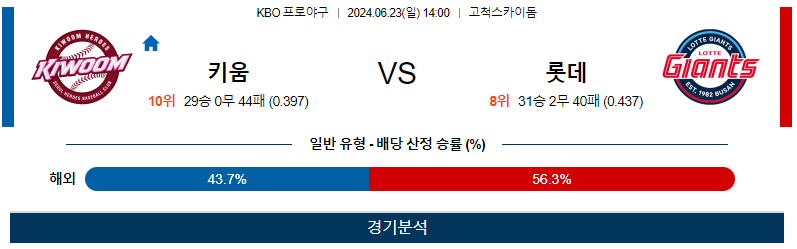 [킹콩티비] 06월 23일 키움 vs 롯데 KBO 생중계, 스포츠분석,스포츠중계