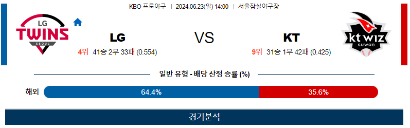 [킹콩티비] 06월 23일 LG vs KT KBO 생중계, 스포츠분석,스포츠중계