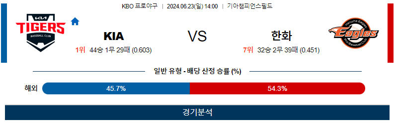 [킹콩티비] 06월 23일 KIA vs 한화 KBO 생중계, 스포츠분석,스포츠중계