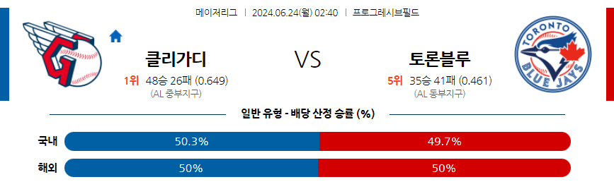[킹콩티비] 06월 24일 클리블랜드 vs 토론토 MLB 생중계, 스포츠분석,스포츠중계