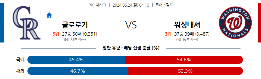 콜로라도 워싱턴 야구분석