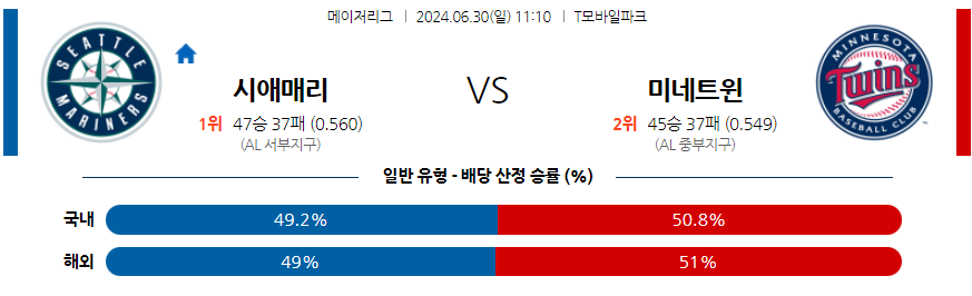 [킹콩티비] 06월 30일 시애틀 vs 미네소타 MLB 생중계, 스포츠분석,스포츠중계