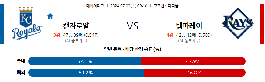 [킹콩티비] 07월 3일 캔자스시티 vs 탬파베이 MLB 생중계, 스포츠분석,스포츠중계