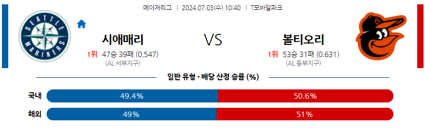 [킹콩티비] 07월 3일 시애틀 vs 볼티모어 MLB 생중계, 스포츠분석,스포츠중계