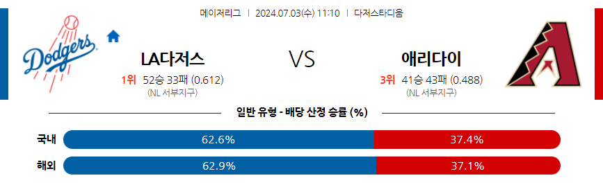 LA다저스 애리조나 야구분석