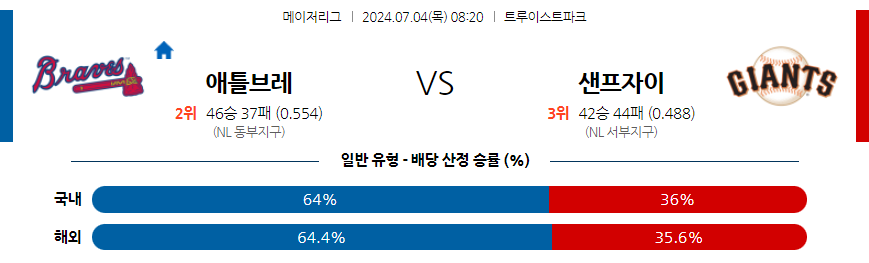 [킹콩티비] 07월 4일 애틀랜타 vs 샌프란시스코 MLB 생중계, 스포츠분석,스포츠중계