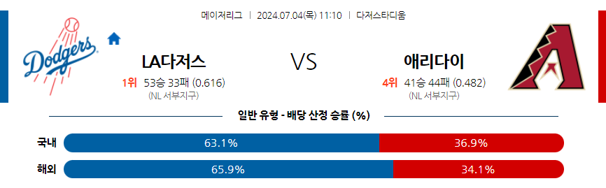 [킹콩티비] 07월 4일 LA다저스 vs 애리조나 MLB 생중계, 스포츠분석,스포츠중계