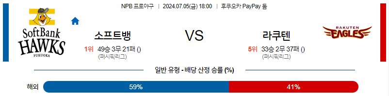[킹콩티비] 07월 05일 소프트뱅크 vs 라쿠텐 NPB 생중계, 스포츠분석,스포츠중계
