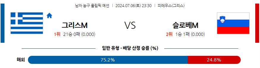 [킹콩티비] 07월 06일 그리스 vs 슬로베니아 2024 올림픽 생중계, 스포츠분석,스포츠중계
