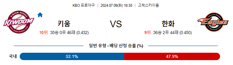 [킹콩티비] 07월 09일 키움 vs 한화 KBO 생중계, 스포츠분석,스포츠중계