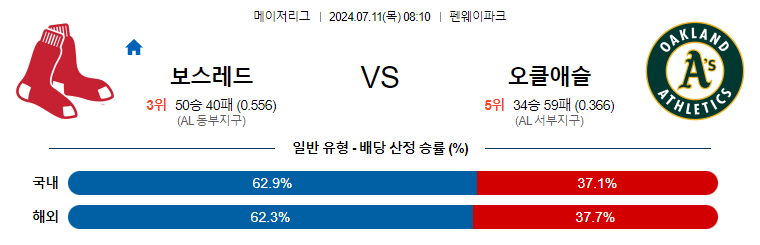 [킹콩티비] 07월 11일 보스턴 vs 오클랜드 MLB 생중계, 스포츠분석,스포츠중계