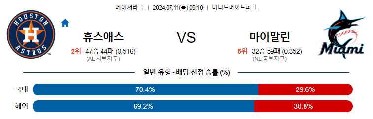 [킹콩티비] 07월 11일 휴스턴 vs 마이애미 MLB 생중계, 스포츠분석,스포츠중계