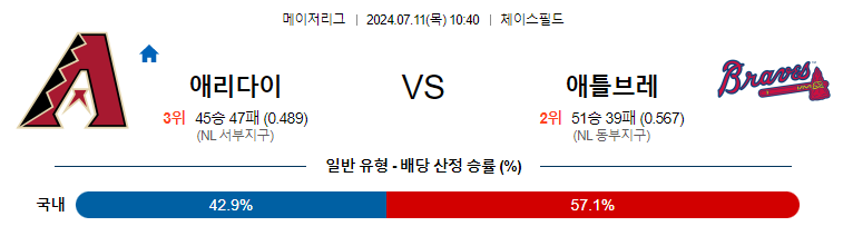 [킹콩티비] 07월 11일 애리조나 vs 애틀랜타 MLB 생중계, 스포츠분석,스포츠중계