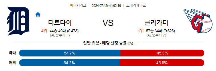 [킹콩티비] 07월 12일 디트로이트 vs 클리블랜드 MLB 생중계, 스포츠분석,스포츠중계