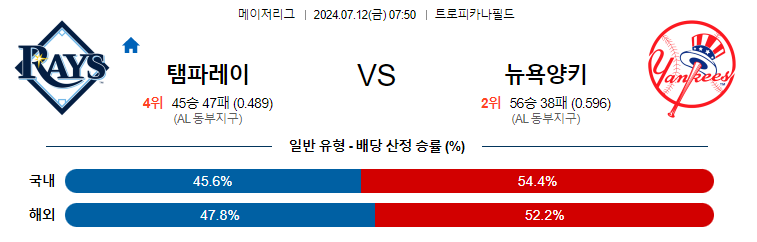 [킹콩티비] 07월 12일 탬파베이 vs 뉴욕양키스 MLB 생중계, 스포츠분석,스포츠중계