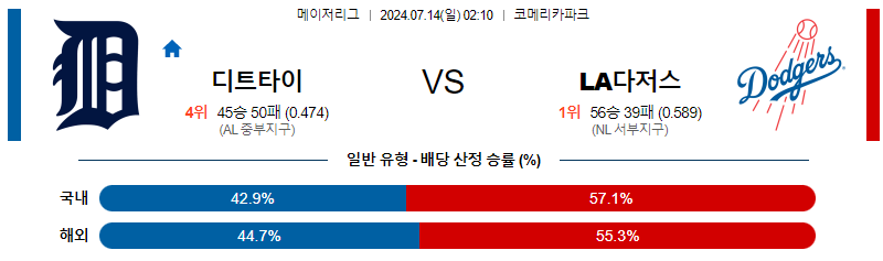 [킹콩티비] 07월 14일 디트로이트 vs LA다저스 MLB 생중계, 스포츠분석,스포츠중계