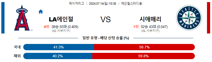 [킹콩티비] 07월 14일 LA 에인절스 vs 시애틀 MLB 생중계, 스포츠분석,스포츠중계
