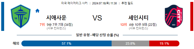 [킹콩티비] 07월 18일 시애틀 vs 세인트루이스 MLS 생중계, 스포츠분석,스포츠중계