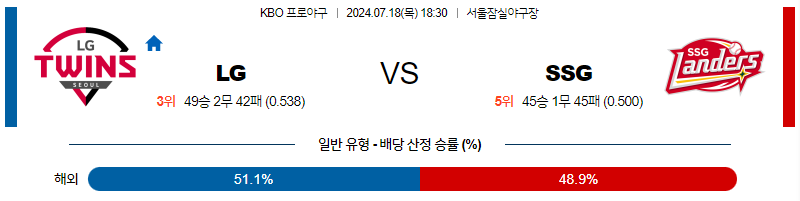 [킹콩티비] 07월 18일 LG vs SSG KBO 생중계, 스포츠분석,스포츠중계