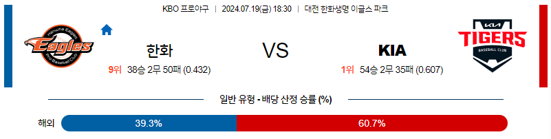 [킹콩티비] 07월 19일 한화 vs KIA KBO 생중계, 스포츠분석,스포츠중계