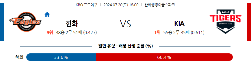 [킹콩티비] 07월 20일 한화 vs KIA KBO 생중계, 스포츠분석,스포츠중계