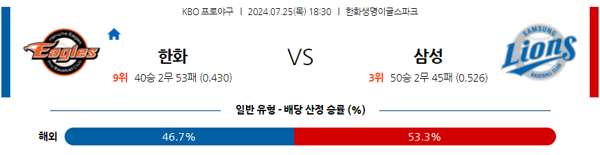 [킹콩티비] 07월 25일 한화 vs 삼성 KBO 생중계, 스포츠분석,스포츠중계