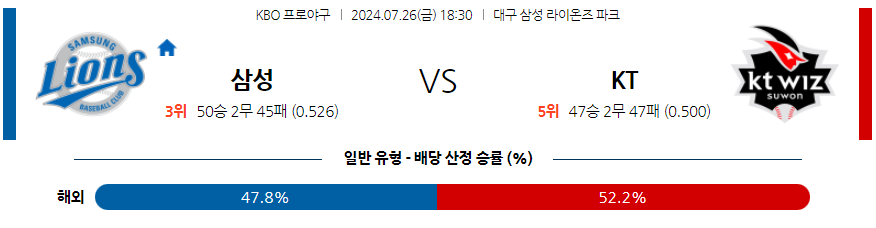 [킹콩티비] 07월 26일 삼성 vs KT KBO 생중계, 스포츠분석,스포츠중계