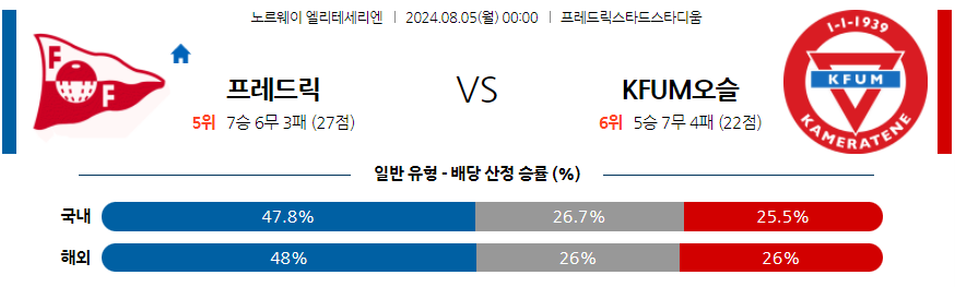 [킹콩티비] 08월 05일 프레데릭스타드 vs 오슬로 노르웨이 생중계, 스포츠분석,스포츠중계