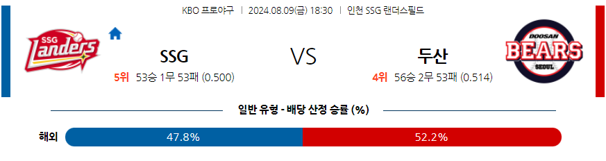 [킹콩티비] 08월 09일 SSG vs 두산 KBO 생중계, 스포츠분석,스포츠중계