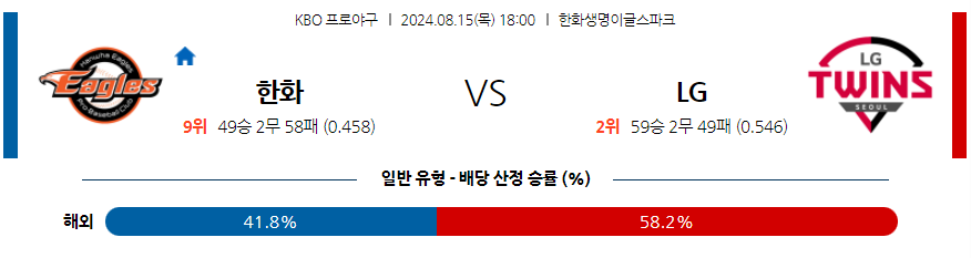 [킹콩티비] 08월 15일 한화 vs LG KBO 생중계, 스포츠분석,스포츠중계