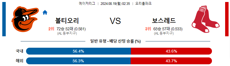 [킹콩티비] 08월 19일 볼티모어 vs 보스턴 MLB 생중계, 스포츠분석,스포츠중계