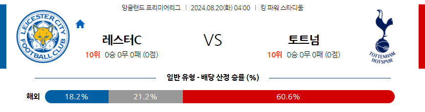 [킹콩티비] 08월 20일 레스터 vs 토트넘 EPL 생중계, 스포츠분석,스포츠중계