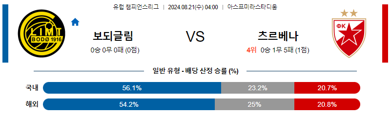 [킹콩티비] 08월 21일 보되클림트vs 즈베즈다 유럽챔피언스리그 생중계, 스포츠분석,스포츠중계
