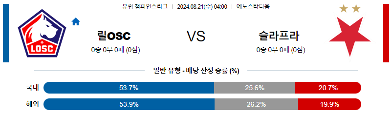 [킹콩티비] 08월 21일 릴 vs 슬라비아프라하 유럽챔피언스리그 생중계, 스포츠분석,스포츠중계