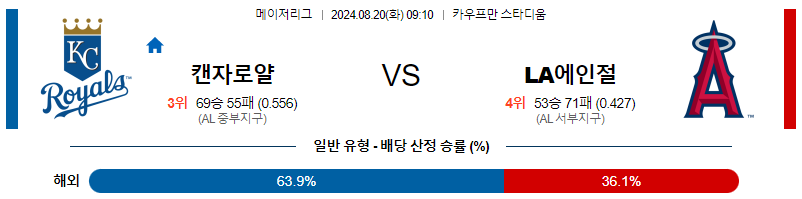 [킹콩티비] 08월 20일 캔자스시티 vs LA에인절스 MLB 생중계, 스포츠분석,스포츠중계