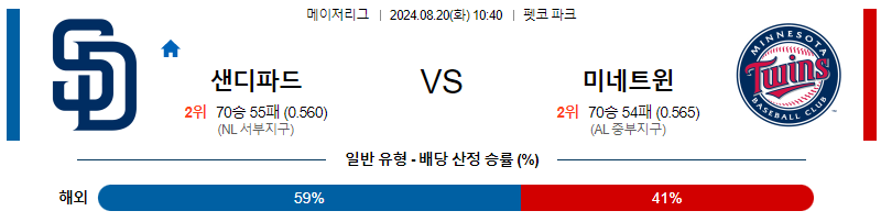 [킹콩티비] 08월 20일 샌디에고 vs 미네소타 MLB 생중계, 스포츠분석,스포츠중계