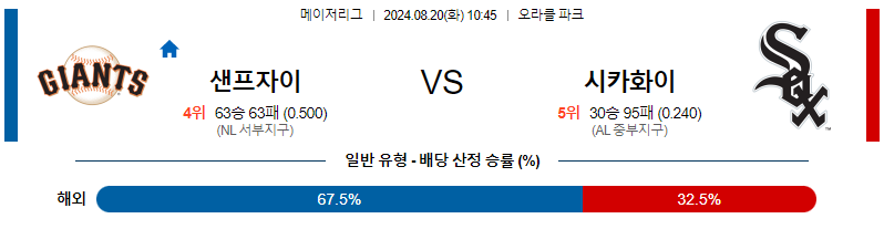 [킹콩티비] 08월 20일 샌프란시스코 vs 시카고화이트삭스 MLB 생중계, 스포츠분석,스포츠중계