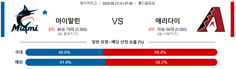 [킹콩티비] 08월 21일 마이애미 vs 애리조나 MLB 생중계, 스포츠분석,스포츠중계