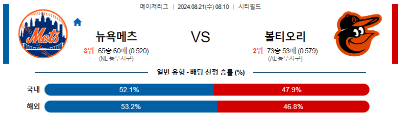 [킹콩티비] 08월 21일 뉴욕메츠 vs 볼티모어 MLB 생중계, 스포츠분석,스포츠중계