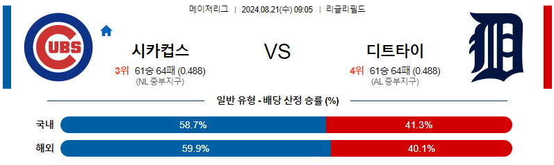 [킹콩티비] 08월 21일 시카고컵스 vs 디트로이트 MLB 생중계, 스포츠분석,스포츠중계