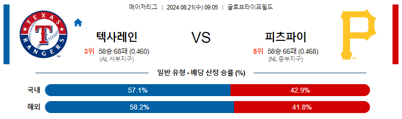 [킹콩티비] 08월 21일 텍사스 vs 피츠버그 MLB 생중계, 스포츠분석,스포츠중계