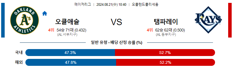 오클랜드 템파베이 야구분석